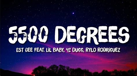 5500 Degrees Lyrics. F*ckin' niggas' hoes, he mad, textin' in all caps beef broad day, lay a. Lil baby, 42 dugg, rylo rodriguez) [official audio] est gee 618k subscribers subscribe 6.2m views 1 year ago #42dugg.