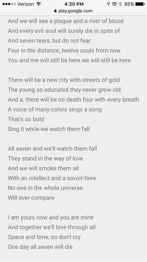 Today we're breaking down the hidden meaning of the lyrics behind prince's hit from the love. No one in the whole. And we will smoke them all. 7 lyrics meaning and breakdown (wordplay #2). No one in the whole universe. One day all 7 will die. [chorus] all seven and we'll watch them fall. [chorus] all seven and we'll watch them fall. All 7 and we'll watch them fall. “we all have our problems. And together we'll love through.