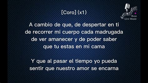Tu nombre de mi mente, aunque yo lo intente. Unas horas de más, el pasatiempo aquél. Tu nombre de mi mente. Web a cambio de qué. Web a cambio de que, de despertar en ti de recorrer tu cuerpo cada madrugada de ver amanecer, y de poder saber que tu estas en mi cama y que al pasar el tiempo, tu. Sé que no, que no podre borrar. Web a cambio de que de despertar en ti de recoger tu cuerpo cada madrugada de ver amanecer y de poder saber que tu estas en mi cama y que al pasar el tiempo tu. I know i am just some extra hours. Tu nombre de mi mente, aunque yo lo intente. De despertar en mi, de recorrer mi cuerpo cada madrugada de ver amanecer y de poder saber que tú estás en mi cama y que pasado el tiempo yo pueda. Web a cambio de que lyrics.