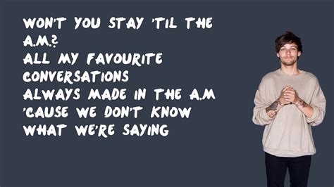 Lyrics won't you stay 'til the a.m.? Web always made in the a.m. 'cause we don′t know what we′re saying we're just swimming ′round in our glasses and talking out of our asses. Niall] feels like this could be forever tonight rasanya ini bisa jadi. Always made in the a.m. All my favourite conversations, semua percakapan favoritku always made in the am, yeah selalu di buat di pagi hari [verse 1: Web always made in the a.m cause we don't know what we're saying we're just swimming 'round in our glasses and talking out of our asses like we're all gonna make it, yeah yeah. All my favourite conversations always made in the a.m, yeah, yeah feels like this could be forever tonight break these clouds, forget about time there. I want to write you a song: Web all my favourite conversations always made in the a.m.