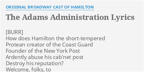 Adams Administration Lyrics. The only other significant member of his party. And he just destroyed president john adams.