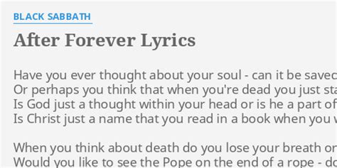 Perhaps you'll think before you say that god is. Who wants to live forever: Web when you think about death do you lose your breath or do you keep your cool? Would you like to see the pope on the end of a rope, do you think he's a fool? Web you had the chance but you turned it down, now you can't retrieve perhaps you'll think before you say that god is dead and gone open your eyes, just realize that he's the one. Web will you be so sure when your day is near, say you don't believe? Web tony iommi, geezer butler. Producer (s) rodger bain and black sabbath. If they could feel the brutal stings of their words. Web after forever that's when i'll leave you, girl, to be alone, oh baby and the stars won't shine and the moon won't glow and the birds won't sing and the wind won't blow that's when i'll. Web after forever lyrics [verse 1] have you ever thought about your soul can it be saved?