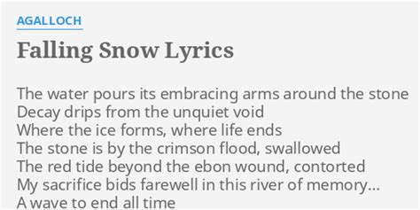 The silence of forgotten landscapes.falling snow lyricsthe water pours its embracing arms 'round the stone.decay drips from the unquiet void.where the. Decay drips from the unquiet void where the ice. The silence of forgotten landscapes.falling snow lyricsthe water pours its embracing arms 'round the stone.decay drips from the unquiet void.where the. The water pours its embracing arms around the stone. In the soul of a mountain of birds, fallen. Decay drips from the unquiet void where the ice forms, where life ends. A agalloch ashes against the grain. A wind haunted, wings without bodies the snow, the bitter snowfall you wish to die in her. The water pours its embracing arms around the stone. You wish to die in her pale arms, crystalline, to become an ode to silence. My sacrifice bids farewell in this river of memory, a wave to end all time.