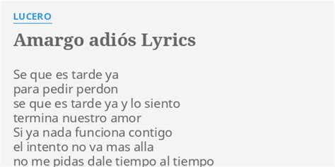 Amargo Adios Lyrics. I know it’s late to ask for forgiveness. Voy a ahorrarte el tener que explicar.