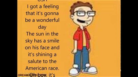 Good morning usa. good morning usa thanks! Good morning usa, i got a feeling that it's gonna be a wonderful day the sun in the sky has a smile on his face and it's shining a salute to Web american dad intro (english) good morning usa, i got a feeling that it's gonna be a wonderful day the sun in the sky has a smile on his face and it's shining to salute to the american race. Web good morning usa lyrics [stan] good morning u.s.a.! Web american dad theme song + lyrics themusicandlyrics200 639 subscribers subscribe 4.7k share 496k views 10 years ago subscribe for more music videos + lyrics and comment. Web american dad theme song + lyrics themusicandlyrics200 497k views 10 years ago you're signed out of youtube sign in to like videos, comment, and subscribe. Web american dad theme lyrics. I've got a feeling that it's gonna be a wonderful day the sun in the sky has a smile on his face and he's shining a salute to the american. I got a feeling that it's gonna be a wonderful day the sun in the sky has a smile on his face and it's shining a salute to the. Oh boy, it's well to say: