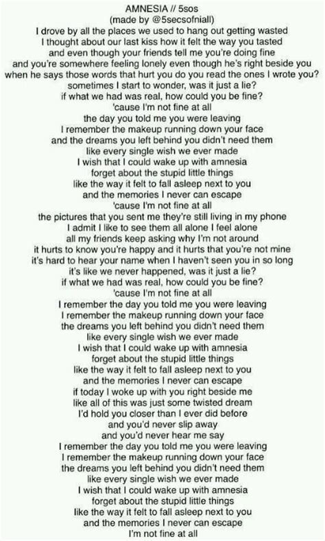 Amnesia Lyrics 5Sos. Like the way it felt to fall asleep next to you. Web amnesia lyrics i drove by all the places we used to hang out getting wasted i thought about our last kiss, how it felt the way you tasted and even though your friends tell me.