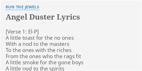 With a nod to the masters. To the ones with the riches. Angel duster lyrics:a little toast to the no oneswith a nod to the mastersto the ones with the richesfrom the ones who the r. Web download/stream run the jewels 2: A little smoke for the gone boys. Web a little toast to the no ones with a nod to the masters to the ones with the riches from the ones who the rags fit a little smoke for the gone boys a little nod to the spirits we're still. Pink cig ] she heard the songs i wrote about her, now she hates my guts i seen people. From the ones who the rags fit. Web angel dust lyrics [chorus: Web a little toast to the no ones with a nod to the masters to the ones with the riches from the ones who the rags fit a little smoke for the gone boys a little nod to the spirits we're still. A little toast for the no ones.