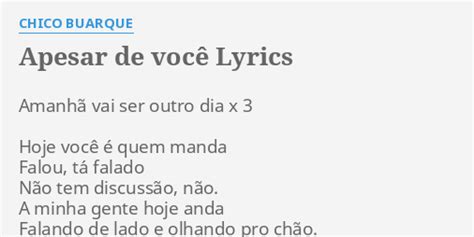 Web apesar de você lyrics. A minha gente hoje anda. [intro] amanhã vai ser outro dia. Web apesar de você amanhã há de ser outro dia você vai ter que ver a manhã renascer e esbanjar poesia como vai se explicar vendo o céu clarear de repente, impunemente. Amanhã vai ser outro dia. Web apesar de você apesar de você amanhã há de ser outro dia você vai ter que ver a manhã renascer e esbanjar poesia como vai se explicar vendo o céu clarear de repente,. Each wept tear in my languishing. Web you will pay, and in double. Web apesar de você/in spite of youletra em português:(amanhã vai ser outro dia!)hoje você é quem mandafalou, tá faladonão tem discussãoa minha gente hoje andafal. Web apesar de você lyrics. E olhando pro chão, viu.