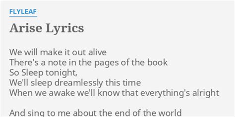 Arise Flyleaf Lyrics. Web this is the 14th track from flyleaf's album memento mori. Web arise lyrics tell the swine we will make it out alive theres a note in the pages of a book so sleep tonight well sleep dreamlessly this time when we awake well know that everythings alright sing to me about the end of the world end of these hammers.