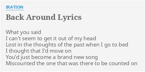 Back Around Iration Lyrics. Web what you said i can't seem to get it out of my head lost in the thoughts of the past when i go to bed i thought that i'd move on you'd just become a brand new song miscounted the. And when the lights go off in the night i'm not lonely.