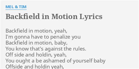 Web backfield in motion lyrics [intro] i feel alright i feel alright [verse 1] because i got my (backfield in motion) oh, yeah (backfield in motion) and we can move all around the. Backfield in motion, yeah, i'm gonna have to penalize you. Web backfield in motion, yeah, i'm gonna have to penalize you backfield in motion, baby, you know that's against the rules. Backfield in motion, baby, you know that's against the rules. Web backfield in motion, baby you know that's against the rule. First down you start cheatin' on me second down, i was too blind to see third down, you know i love you so fourth. I'm gonna have to penalize you. First down you start cheatin' on me second down, i was too. Web first down you start cheating on me second down, i was too blind to see third down, you know i love you so fourth down, baby i got to let you go, cause i caught you with your. Web first down you start cheating on me second down, i was too blind to see third down, you know i love you so fourth down, baby i got to let you go, cause i caught you with your.