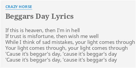 Beggars Day Lyrics. Web and i have crossed myself in anger all your mercy can't save me, all your mercy can't save me all your mercy can't save me Web if this is heaven, then i'm in hell if trust is misfortune, then wish me well while i think of sadness, baby your light shines through your light shines through your light shines.
