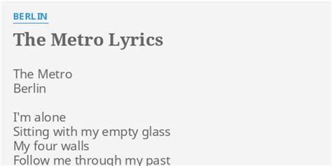 Berlin Metro Lyrics. I was on a paris train, i emerged in london rain. I'm alone, sitting with my broken glass.