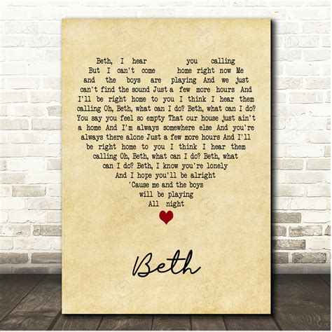 It's so sad, and i'm sorry / how can i turn back the story / look at me , can you feel it too / that i'm down on my knees beggin' you / to come back home soon,. Web beth, i hear you calling but i can't come home right now me and the boys are playing and we just can't find the sound just a few more hours and i'll be right home to you i think i. Web beth i hear you calling but i can't come home right now me and the boys are playing and we just can't find the sound just a few more hours and i'll be right home to you i think i. Beth, what can i do? And i hope you'll be alright. In the time it takes. 'learning to live', 'i'll stay with you', 'leave the light on', 'lay your hands on me', 'hiding under water' You say you feel so empty that our house just ain't our home i'm always somewhere else and you're always there alone just a few. Web beth i hear you calling but i can't come home right now me and the boys are playing and we just can't find the sound just a few more hours and i'll be right home to you i think i. She thought it was so pretty.