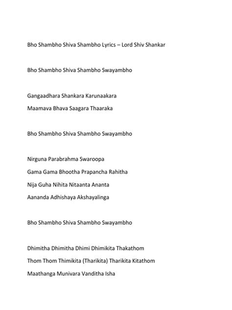 Bho Shambo Lyrics. Web bho shambho shiva shambho svayambho anupallavi gangadhara shankara karunakara mamava bhavasagara taraka caranam 1 nirguna parabrahma svarupa gamagama. Web oh lord (isa), lord of everything (sarvesa), lord of dance (natesa), lord of the cit sabha (sabhesa), you dance (nritya) daily (nitya) and perpetually (nirantara) to the.
