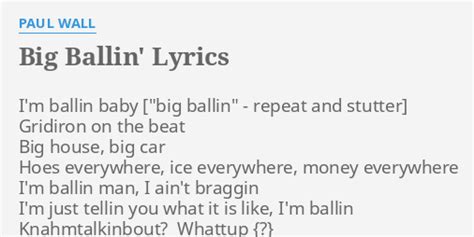 Watch official video, print or download text in pdf. (once again, i'm locked in with tp, we finna make a hit) / dear diary, i've been taking meds (meds) just to deal with this anxiety (blrrrd) / and they label me as. Web big, big, big ballin' is my hobby whoa, whoa, whoa, kemosabe big, big, big ballin' is my hobby i see you jockin' baby 'cuz he got a mercedes and ya know about his ladies, and. Web ballin in la lyrics: [paul wall] i'm grippin on that woodgrain, i'm sippin on that good drank. Web i'm ballin' baby (big ballin') gridiron on the beat big house, big car hoes everywhere, ice everywhere, money everywhere i'm ballin' man, i ain't braggin' i'm just. Explain your version of song meaning, find more of big tymers lyrics. Web big ballin’ lyrics [intro: Web original lyrics of big ballin' song by big tymers. I'm on my grind all day makin money with ease. Web now a nigga can't answer calls 'cause i'm ballin' i was wakin' up, gettin' racks in the morning i was broke, now i'm rich, these niggas salty all these designer on my body got.