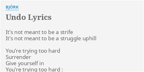 Bjork Undo Lyrics. It's not meant to be a strife. Web undo by bjork undo lyrics it's not meant to be a strife it's not meant to be a struggle uphill oh i it's not meant to be a strife it's not meant to be a struggle uphill oh i you're trying too.