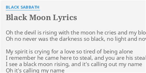 Black Moon Lyrics. Oh it's calling my name. I've been blinded, lost and confused, darkness will call me no more.