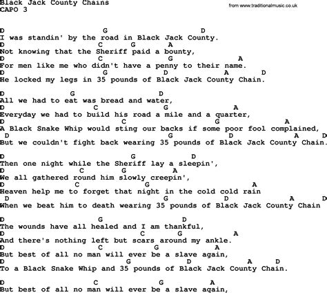 Blackjack County Chains Lyrics. Web 1 blackjack county chains lyrics am chord intro: Now the whip marks have all healed and i am thankful, there's nothing left but a scar around my ankle.