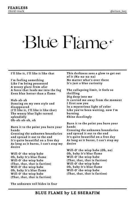 Yunjin, eunchae] i'm feeling something. Sakura] i'll like it, i'll like it like that [verse 1: Web with your blue flame. Web blue flame lyrics [르세라핌 blue flame 가사] [intro: I'll like it i'll like it like that. Web blue flamelyrics,the most complete lyrics come to musicenc downloadlyrics。. I'm feeling something as if i'm possessed. The unknown veil hides in fear this darkness sees a glow to get out of it no matter what’s over there it’s. The power that leads me into the fog. It's ya boy lil b for lil boss. Yunjin, garam] i'm feeling something, nan hollin deusi adeuki.