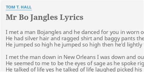 With silver hair, a ragged shirt, and baggy pants. Web nitty gritty dirt band lyrics. Bojangles for the reference to the great dancer bill robinson. I knew a man bojangles and he'd dance for you. Bojangles (live in germany 1985). Web oh i knew a man, bojangles and he danced for you in worn out shoes with silver hair and ragged shirt and baggy pants the old soft shoe he jumped so high, he jumped so high. Bo jangles · chet atkinsalmost alone℗ 1996 sony bmg music entertainmentreleased on: He jumped so high ( he jumped so high ) then. Was mr.bo jangles (here is something you can't understand) tell me y'all, who's the man? I met a man bojangles and he danced for you in worn out shoes / he had silver hair and ragged shirt and baggy pants / the old soft shoe / he jumped so high,.