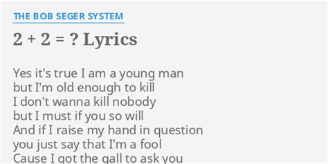 Web (two plus two is on my mind) by the bob seger system, as performed on the album ramblin' gamblin' man. Then there's something left untold. Then there's something left untold. I'm no statesman i'm no general. Web lyrics yes, it's true, i am a young man but i'm old enough to kill i don't wanna kill nobody but i must if you so will and if i raise my hand and question you just say that i'm a fool. Web 2+2 is on my mind. Yes it's true i am a young man / but i'm old enough to kill / i don't wanna kill nobody / but i must if you so will / and if i raise my hand. Web 2+2 is on my mind all i know is that i'm young, and your rules they are old. Web 2+2 is on my mind. Then there's something left untold.