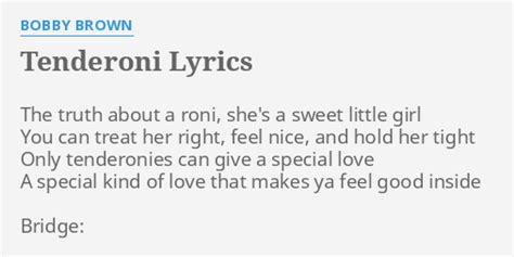 Bobby Brown Tenderoni Lyrics. Web and if you find a tenderoni that is right for you make it official give her your love, oh yeah [chorus] my heart belongs to a roni (she's my only lover) she's my only love (my only. Said once you had a roni.