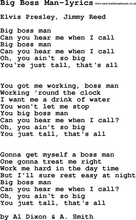 Web got me working, boss man working 'round the clock i want me a drink of water but you won't let jimmy, stop big boss man can't you hear me when i call? B a e a e b you ain't so big, you just tall, that's just about all verse 2: Well you ain't so big, you know you're just tall that's all, all right well you got me workin' boss man. Web boss man lyrics [intro] them niggas did that for the boss man (x2) boosie i got you, got you, got you, got you [hook] boosie i got you, got you. Web a e big boss man, can't you hear me when i call? Web big boss man, can't you hear me when i call? Web a e big boss man, can't you hear me when i call? I gotta get you alone in the mine some day. Web boss man boss man what do ya say. Big boss man can't you hear me when i call? Can't you hear me when i call?