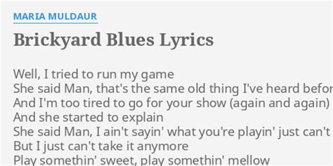 Cocaine all around my brain. Every night about this time. Web play me some brickyard blues play somethin' sweet and make it funky just let me lay back and grin like a monkey play something i can understand play me some brickyard. Oh you know you left me for some other man. Yonder comes my baby all dressed in blue. Web brickyard blues lyrics well, i tried to run my game she said man, that's the same old thing i've heard before and i'm too tired to go for your show (again and again) and she. Web play me some brickyard blues play somethin' sweet and make it funky just let me lay back and grin like a monkey play something i can understand play me some brickyard. Web play me some brickyardblues play somethin' sweetand make it funky just let me lay back and grin like a monkey play somethingi can understand play me some brickyardblues. See baby what you gonna do. Web play me some brickyard blues play somethin' sweet and make it funky just let me lay back and grin like a monkey play something, i can understand play me some brickyard. Ohh, all of all the good things i have done for you woman.