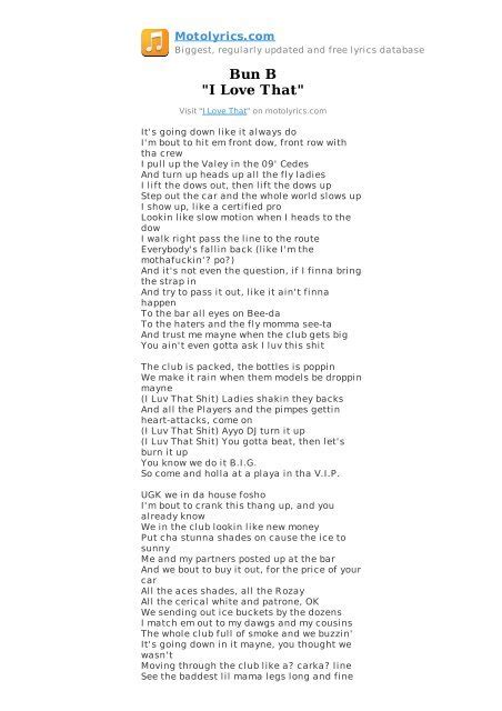 Bun B Lyrics. Web [bun b] now if you never been to texas, there's a picture to paint cause we doing it real big, in case you thinking we ain't it's lots of money on these streets, being spent and. I take shots and don't fuckin miss first.