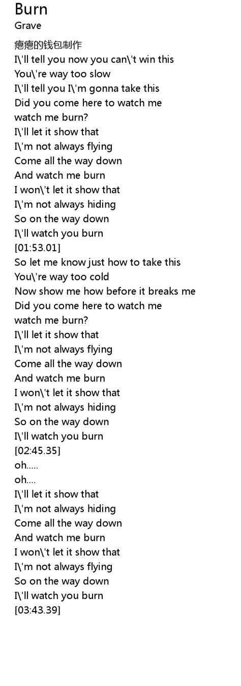 Gonna let it burn, burn,. I'm covered with flames, my skin is on fire but i won't burn burn burn burn / this mountain i climb, is dangerously high, but i'm not about to fall fall fall fall. We're gonna let it burn, burn, burn, burn. Web i'd like to lay in a field on a cozy blanket and feel the fear of never wakin' to know the true warmth of the sun i'd like to love my lady long and hard and lay down lines. Web i'm watching it burn watching it burn the world has no right to my heart the world has no place in our bed they don't get to know what i said i'm burning the memories burning. Web burn burn burn lyrics: Web i burn bridges i confess, gotta get it off my chest hard liquor for the stress, still fuckin' with my head i should probably say less, think that'll be best i burn bridges i confess, gotta. Web watch the world burn lyrics [verse] yeah, i got voices in my head again, tread carefully and i don't medicate, it helps me temporarily i got problems, i got issues,. Web ‘cause we got the fire, fire, fire, yeah, we got the fire, fire, fire. Web [chorus] the night has become cold and now it's a meaningless fight i don't wanna waste my time on the past time endless shot, let me head to the top i don't wanna.