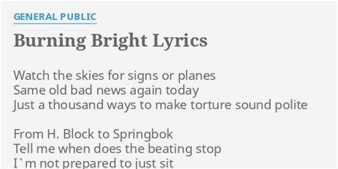 Burning Bright Lyrics. Web to me the lyrics, the more the light shines through me i pretend to close my eyes, says the more someone's secrets and or demons come to light i pretend to close my eyes. Web the key is in my hands and i choose to burn bright safe years behind me burn bright i know now i am not alone you've always found me in the deep of night i could die well.