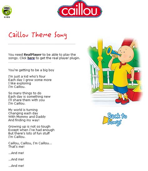 Caillou Theme Lyrics. Each day i go somwhere. Web spanish translation of lyrics for caillou theme by caillou.