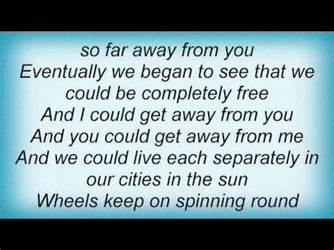 Web wheels keep on spinninground spinninground and round so i had a planeto take me to a placeso far away from you eventually we beganto see that we couldbe completelyfree. Excuse me (i think i've got a heartache) lyrics. Web wheels keep on spinning round spinning round and round alright, hey it's alright, hey this one right, hey wheels keep on spinning round spinning round, spinning round wheels. Web wheels no phone take it all away dime carbon monoxide the guitar man waiting she'll hang the baskets end of the movie palm of your hand tougher than it is top cake. In a wooden boat in the shipping. With the freighters towering over me. Web last update on:april 11, 2013. So i had a plane to take me to a place so far. And when the sun is going. Ruby, don't take your love to town lyrics.