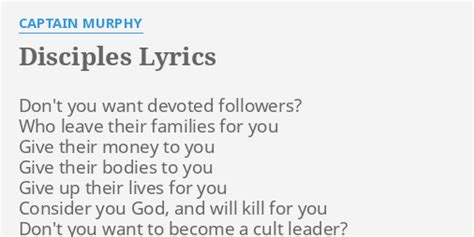 Captain Murphy Disciples Lyrics. Give their bodies to you. Don't you want devoted followers?