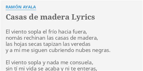 Casas De Madera Lyrics. Nomás rechinan las casas de madera. (esta va para mi compadre, nalo) (¡échale, mi vida!) el viento sopla, qué frío hace afuera.
