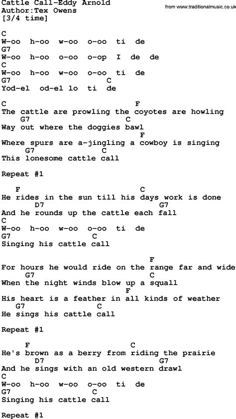 Cattle Call Eddy Arnold Lyrics. For hours he would ride on the range far and wide when the night wind blows up and slow his heart is a feather in all kinds of weather he sings his. (moan) singin' this cattle call.
