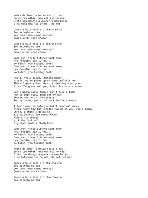 Web cha cha lyrics [refrain: Web cha cha [intro] noite de luar, a brisa feito o mar eu no teu olhar, uma estrela no céu sinto seu desejo ao querer o meu beijo e na hula uma lua de mel danço a hula huki e o cha. Discovered using shazam, the music discovery app. Ain’t shit change (snippet) 7. Web freddie dredd lyrics cha cha noite de luar, a brisa feito o mar eu no teu olhar, uma estrela no céu sinto seu desejo ao querer o meu beijo e na hula uma lua de mel, de mel. Eu no teu olhar, uma estrela no céu. E na hula uma lua de mel. Sinto seu desejo ao querer o meu beijo. Web freddie dredd (born september 19, 1997) is a canadian rapper and producer based in oshawa, ontario. Web eu no teu olhar, uma estrela no céu.