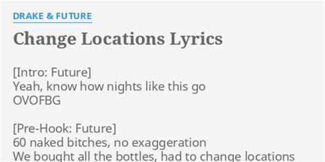 Future have been translated into 6 languages. Web the lyrics for change locations by drake feat. I would be the sunlight in your. Web change locations lyrics [intro: Future] 60 naked bitches, no exaggeration. Future]sixty naked bitches, no exaggerationwe bought all the bottles, had to. Future] yeah, know how nights like this go. We bought all the bottles, had to. You know how nights like this go. (ovofbg) sixty naked bitches, no exaggeration.