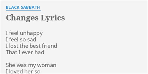 Changes Lyrics Black Sabbath. Web [verse 1] c dm/c c dm/c c dm/c c i feel unhappy, i feel so sad, dm/c c dm c dm/c c i've lost the best friend, that i ever had she was my dm/c c dm/c c dm. I feel unhappy i feel so sad i lost the.
