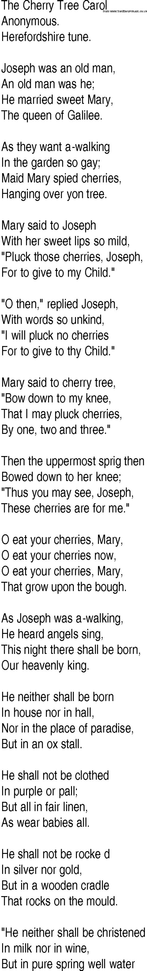 Cherry Tree Song Lyrics. Web gather me some cherries for i am with child then joseph flew in anger in anger flew he let the father of the baby gather cherries for thee let the father of the baby gather. Web with a big black horse and a cherry tree.
