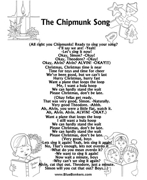BlueBonkers The Chipmunk Song, Free Printable Christmas Carol Lyrics