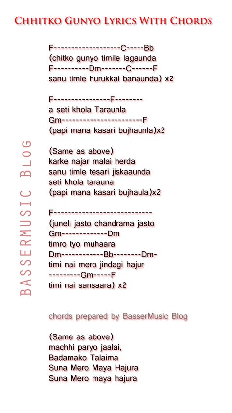 Chitko Gunyo Lyrics. Rajani rana, sanu baba chords for chitko gunyo timile lagauda seemarekha ft. Web chords for chitko gunyo timile lagauda seemarekha ft.