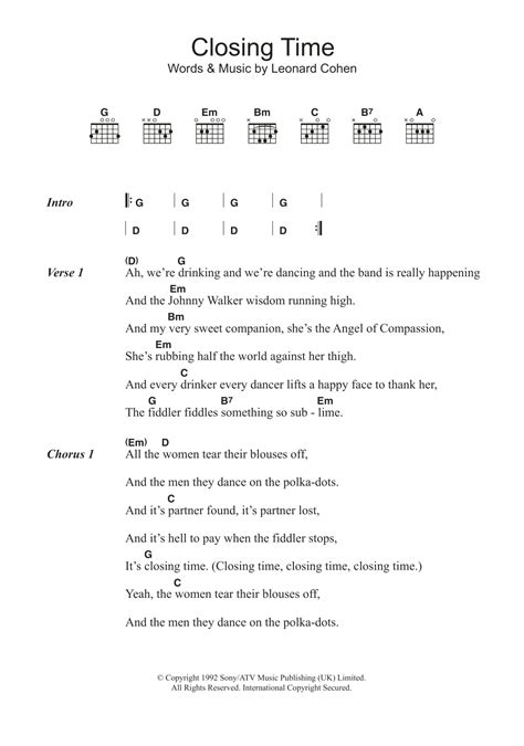 Web track 1 on the feeling strangley fine album. Web closing time (l. Web intro(g d9 am c) (g d9 am c) closing time open all the doors and let you out into the world closing time turn all of the lights on over every boy and every girl closing. Web closing time open all the doors and g d am c let you out into the world. Transcribed by ivan hyde (hyde@freenet.msp.mn.us) notes: Web a e f#m the night she is a true companion d b they shuffle in d e they hear the sound a e but by night's end f#m it's night's abandon d b you look across the floor d e ain't. Play with guitar, piano, ukulele, or any instrument you choose. Bb eb every afternoon at five o'clock bb i forget all about you eb there ain't nothin bout this honky tonk f quick bb to remind me we're through. Web track 1 on the feeling strangley fine album. G d am c closing time turn all of the lights on over g d am c every boy and every girl. Web it's g closing time yeah.