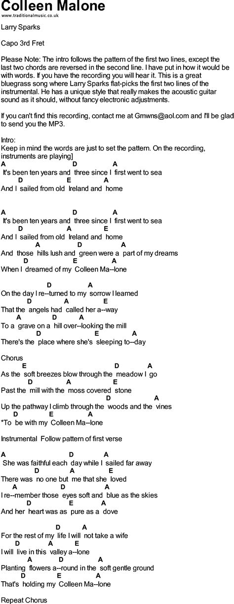 Colleen Malone Lyrics. She was faithful each day as i sailed far away, there was no one but me that she loved, i remember those eyes soft and blue as. Web lyrics for colleen malone by larry sparks.