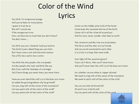 Colors Of Wind Lyrics. Has a life, has a spirit, has a name. But i know every rock and tree and creature.