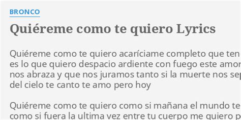 Como Te Quiero Lyrics. Web como te quiero yo a ti quizas me muera llorando, soñando, esperando un amor que nunca vendra quizas me muera sufriendo, ofreciendo las cosas mas bonitas de mi amor. Como el viento que canta y sopla.
