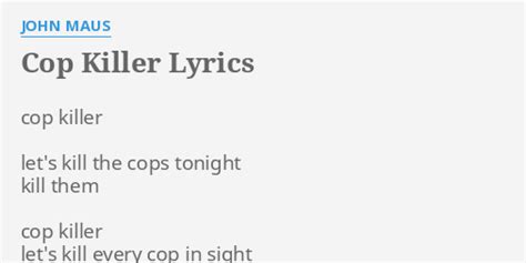 Cop Killer John Maus Lyrics. We can breakthrough maniac rights for gays don't worship the devil and heaven turned to her weeping too much. Web cop killer let's kill the cops tonight kill them, cop killer let's kill every cop in sight, cop killer law against the law against the law against the law cop killer let's kill the cops.
