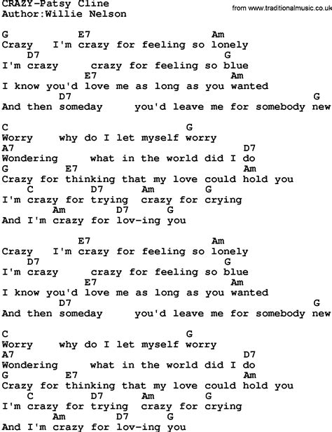 Country MusicCrazyPatsy Cline Lyrics and Chords