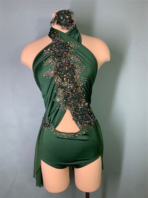 2 Piece Custom Lyrical Dance CostumeHUNTER Green and Navy Etsy